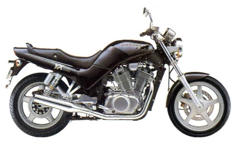 | 1990 | Suzuki | VX800 | 798 | 40 | 5.9 | 63 hp | 31.5 in | 480 lb |