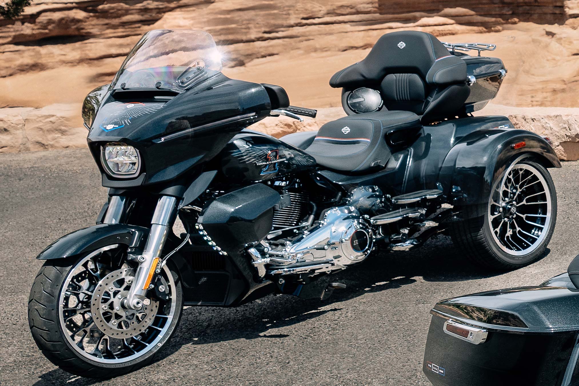 A second-generation Harley-Davidson Trike design introduces all-new rear suspension for significantly improved rider and passenger comfort and the invigorating performance of a new Milwaukee-Eight 117 VVT engine. Both models deliver convenience, technology and styling features that align with premium Harley-Davidson two-wheel Grand American Touring motorcycles.
