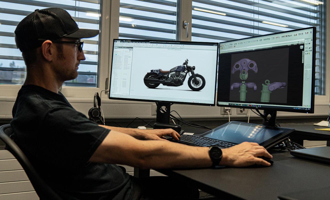 A celebration of Indian Motorcycle’s legacy, the Indian Concept Girder blends bold design with unmatched engineering. It pays tribute to the girder front fork, first introduced to the Indian Chief in 1946. Nearly as legendary as the valanced fenders and Indian headdress, the girder front-end design was a defining development and a significant improvement over the previous leaf-sprung design.